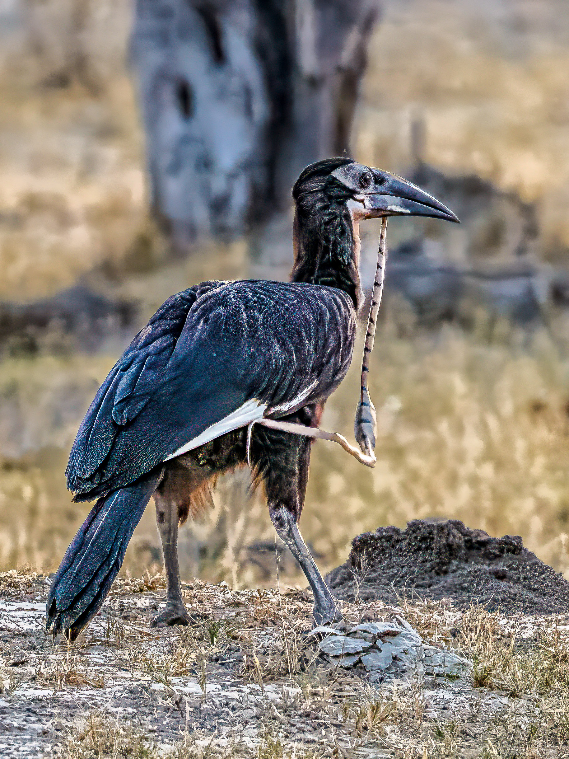 Jouvenile Southern Ground Hornbill with a snake